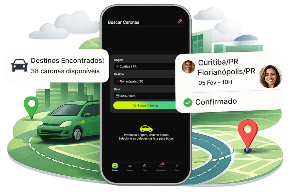 Informe de onde você sai e para onde quer ir. Encontre caronas disponíveis no seu caminho.